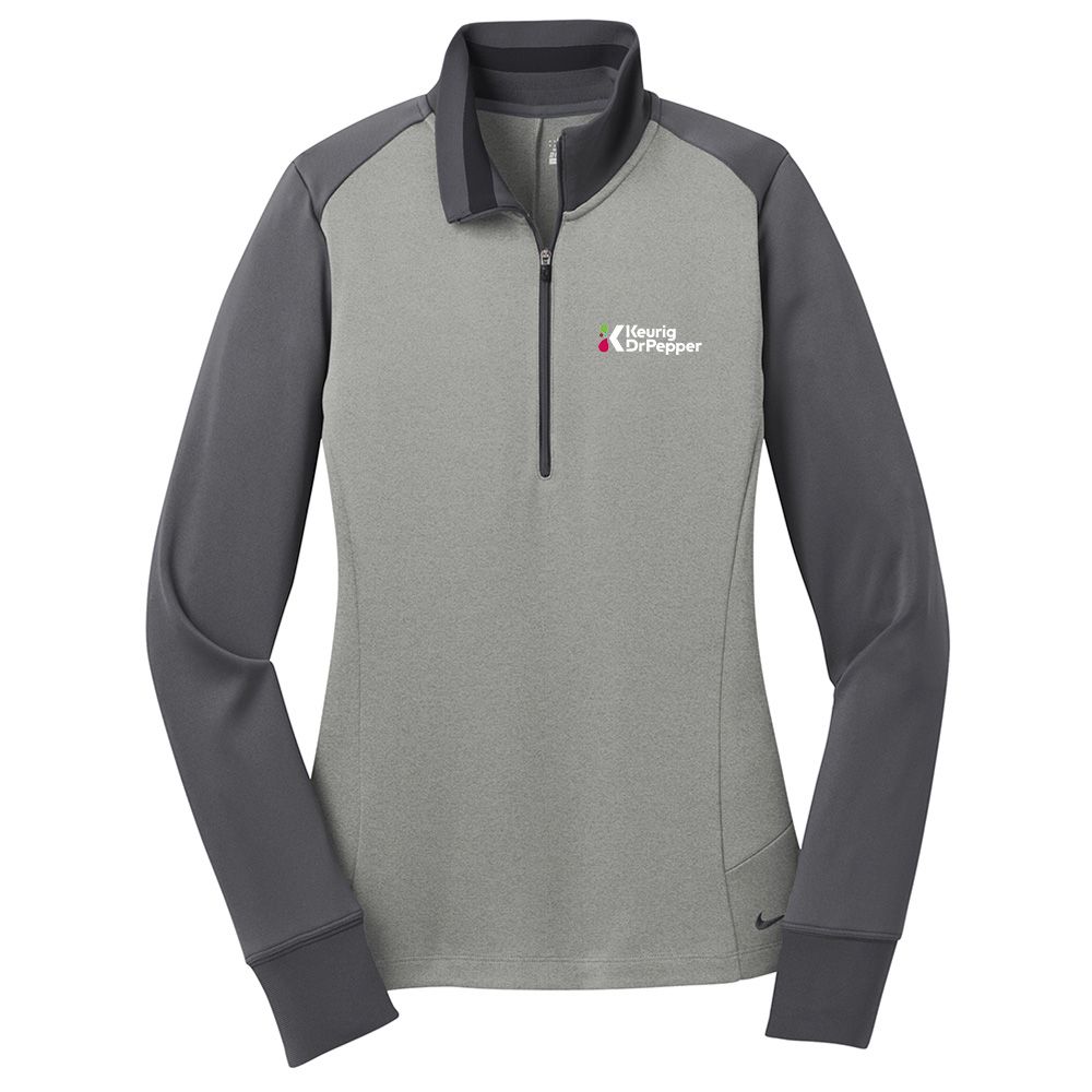 A boldly striped inner collar and reverse coil zipper give this cover-up an edge. Of course it also performs with Dri-FIT moisture management technology. The design features a flat knit collar and cuffs and an open hem. Tailored for a feminine fit with shaped sleeve cuffs and a drop tail hem. The contrast Swoosh design trademark is embroidered on the left hem. Made of 8.3-ounce 100% Dri-FIT polyester.